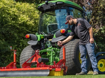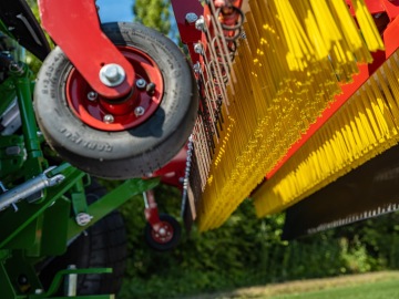 Combi-Groom uhrabuje a kartáčuje povrchy umělých trávníků jedním přejezdem. Magnetický systém sbírá a zadržuje kovové nečistoty a zanechává odplevelený, rovný a bezpečný povrch. Kola umožňují plynulé nastavení pracovní hloubky pro zajištění výsledků a výkonu.