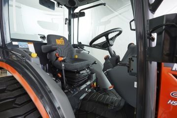 Ergonomická kabina obsahuje: klimatizaci a topení, panoramatické okno se zadními a předními stěrači, luxusní odpružené sedadlo a pracovní světlomety vpředu i vzadu.